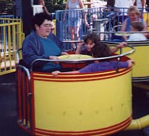 Leah's mom, Carrie, had fun on the spinning rides. |
